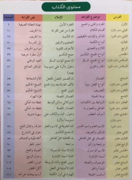 كلا الكتابين الواحد مكمل للاخر ويحتوي الكتابان على مفاهيهم قواعد اللغة العربية والتي تتضمن الأفعال الماضي والمضارع والامر والضمائر وكيفية تكوين الجمل الاسمية والفعلية وحروف الجر وبعض المعلومات البسيطة بحيث تمهد الطالب للمرحلة الثالثة ويحتوي الكتابان على مواضيع جميلة ومفهومة وأغلبها تتحدث عن الحياة اليومية بحيث يتعلم الطالب منها الكثير من المفردات الجديدة التي لم يسبق له سماعها وايضاً توجد المرادفات والمعاني والتمارين وايضاً الإملاء أو النسخ وهذا مفيد جدا يُبين مدى فهم الطالب للدرس وتعلمه المفردات من خلال الدرس .وقد أضيفت الى هذا المنهاج فقرة أسبوعية وهي الإنشاء أو التعبير من اجل ارفاد الطالب بخبرة التعبير باللغة العربية وتنمية قدرته على التعبير مع زيادة رصيده من المفردات مع تعلم كتابة كلمات جديدة والبدء بكتابة موضوع كامل مقسم ادبيا” الى بداية ومضمون ونهاية . وقد لُوحظت رغبة الطلاب باتقان هذه الفقرة وتجاوزهم اية صعوبات كانت قد وجدت في البداية.