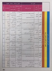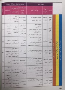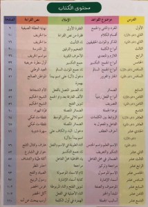 نقسم مادة اللغة العربية للصف الثالث على أربعة اجزاء ولكنها تتداخل فيما بينها: ١-القراءة وتشمل دروساً في أصول اللغة وفِي فهم وتحليل النص مما ينقلنا الى مادةالتعبير ثمّ الإملاء التي تغنيها مادتي أصول اللغة والقواعد معاً في القراءة والتعبير وتحليل النص تتنوع دروسنابتنوّع فصول السنة وتعرفنا بمظاهر كل فصل وربطه بالأنشطة والأعمال التي تناسبه كلها بأسلوب يشدّ الطالب ويشجعه على الملاحظة والتحليل وصولا الى الاستنتاج مثلا: يراقب الطبيعة من أشجار وغيوم وهواء ويربطها بمظاهر فصول السنة ويستنتج في اَي فصل نحن وهكذا فصل الخريف ومظاهره وربطه بالمدرسة والعمل وفلاحة الارض فصل الربيع ومظاهره وربطه بالطيور وعودة الحياة والتجديد فصل الشتاء وجعله مناسبة لاجتماع العائلة وتبادل القصص التراثيّة عبر الأجيال فصل الصيف والتركيز على الحصاد والتعاون من خلال قصة حبة القمح بالإضافة الى ذلك هناك دروس تركّز على حب الوطن وواجبنا كمواطنين واحترام الحريات الفردية والجماعيّة بعض الدروس العلميّة التي سلّطت الضوء على شخصيات تاريخيّة علميّة واكلات شعبية ومن خلالها نتعرف على مصادر الطاقة والأجسام واختلافها وعلى الحرارة وتغيّرها واختلاف المناخ باختلاف المناطق اما دروس القواعد فهي تتدرّج من مراجعات للإسم والفعل والحرف ثمّ الشرح بإسهاب عن كلّ منهم وصولا الى المفرد والمثنى والجمع بأنواعهم والافعال الماضية والمضارعة والامر والضمائر المنفصلة وتصريف هذه الأفعال معها الضمائر المتصلة وأحرف الجر والجملة الاسمية والفعلية ،احرف العطف،التاء في آخر الأسماء والافعال ،ال التعريف ،الجموع وأنواعها الصفة والموصوف وأسماء الإشارة وفِي الإملاء تم. التركيز على كتابة التاء والتفريق بين الأحرف المتقاربة صوتيا مثل الطويلة او المربوطة حرفي التاء والطاء او السين والصاد ….. على التنوين وهمزة الوصل وال التعريف اما مادة التعبير فكما ذكرت آنفا هي مستوحاة ومستخلصة من دروس القراءة وما هي الا تطبيقات عليها وتنقسم الى أسئلة حول النص معاني واضداد سؤال تحليلي استنتاجي وموضوع تعبيري مصغّر